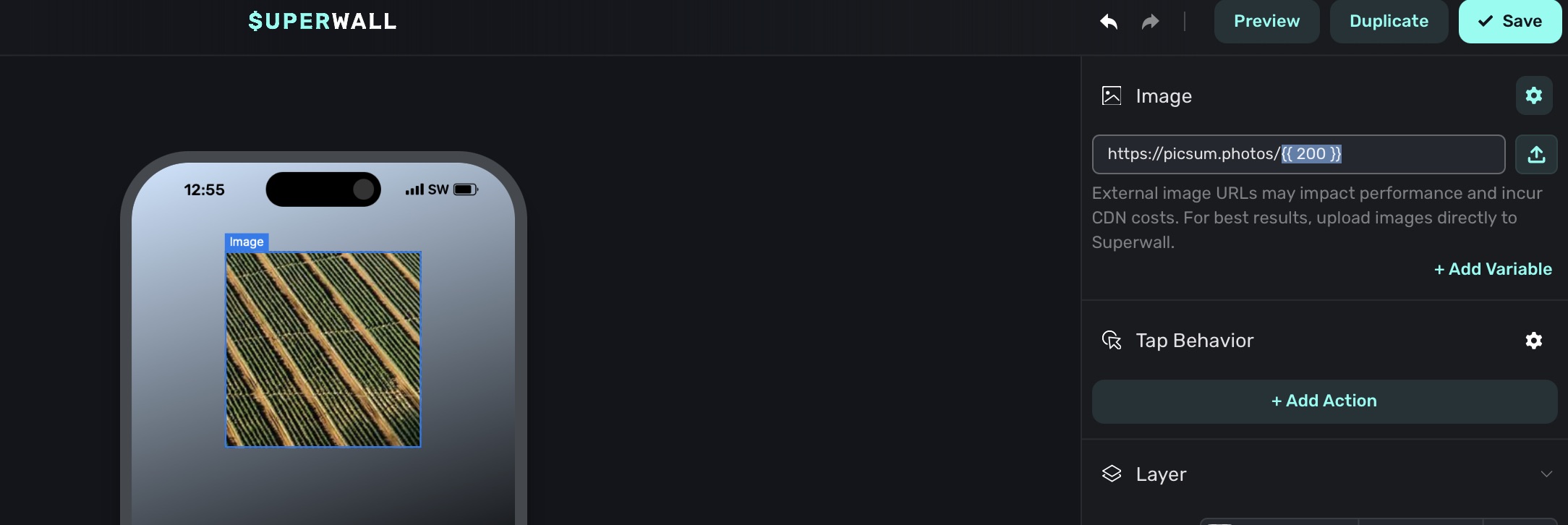 You can use Liquid for any image URL in the Superwall editor. It can either be the entire URL, or interpolated with an existing one: