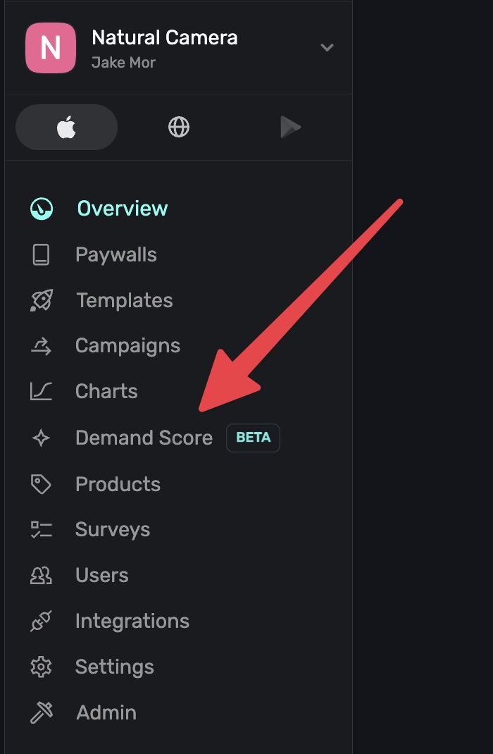 Demand Score helps you understand how likely each user is to convert, so you can target the right people with the right offers. To view it, click Demand Score in the sidebar: