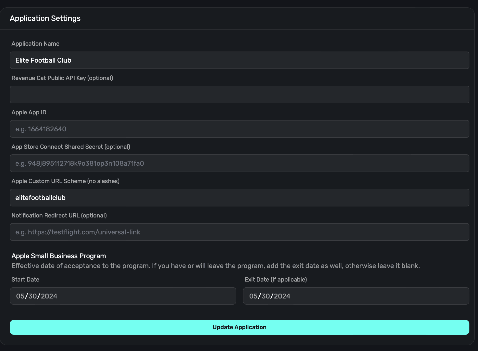 If you are a part of Apple's small business program, add in the date you were accepted into it. Optionally, add the date you were removed (if applicable). We'll use this to accurately report revenue metrics.