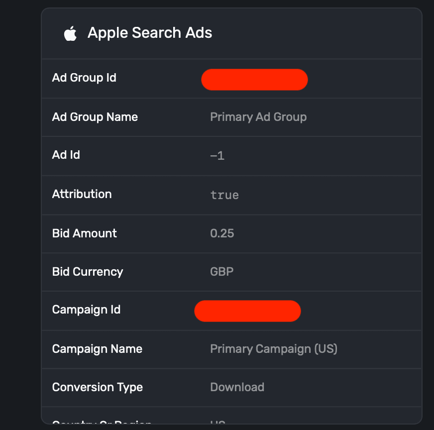 • You can leverage search ad data in your campaigns. This opens up the ability to do things like showing a specific paywall to a user who was acquired via a search ad, tailor messaging from the keyword that was used, and more.