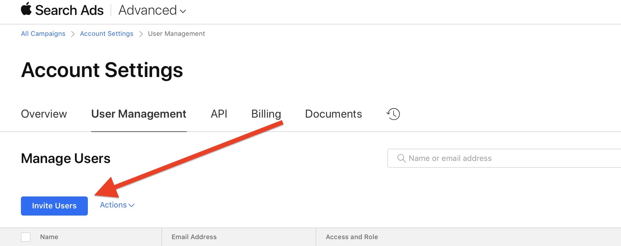 3. Under User Management, click Invite Users.