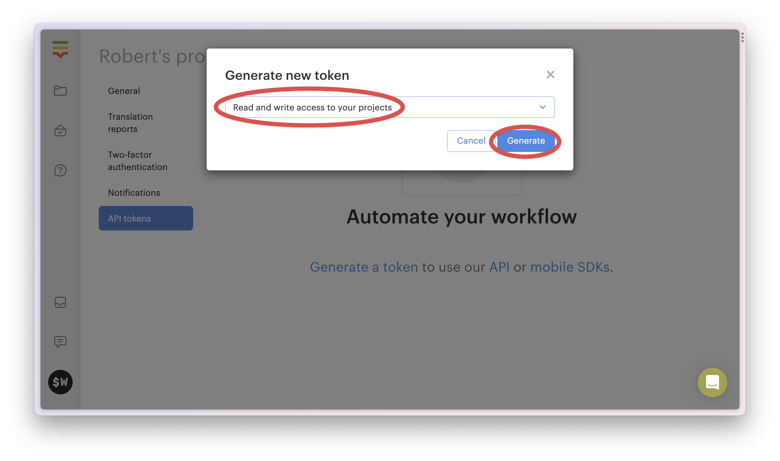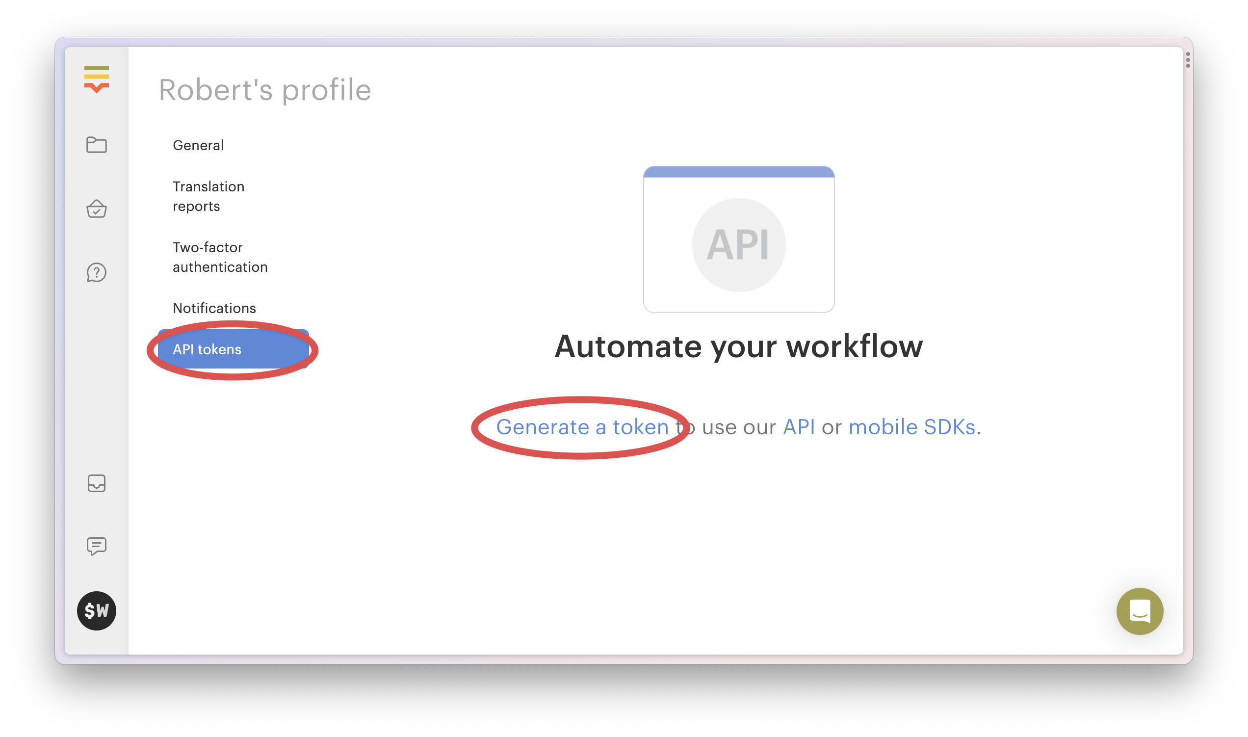 To set up Lokalise, you'll need to generate an API key from your dashboard.